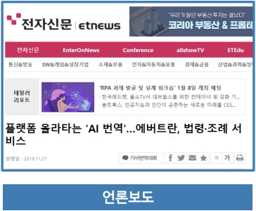 Artificial intelligence is a key part of the 4th Industrial Revolution. By introducing it to translation services, we were able to achieve automation and standardization of translation platform processes. We built specialized machine translation models for each field through incremental machine translation learning to provide translation services tailored to customer needs.